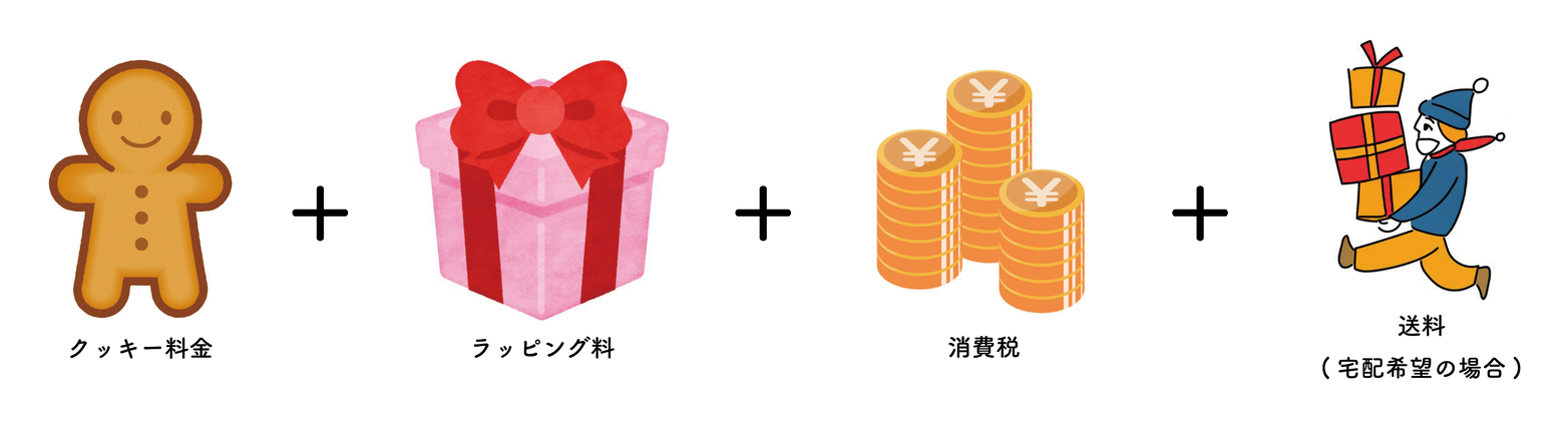 クッキーの大きさ、デザイン、色の数により価格が変わります。